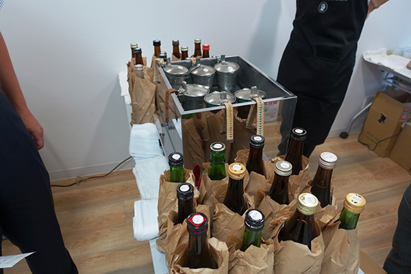 ・審査温度まで湯煎し、審査番号の入ったきき猪口に注ぎ入れて審査テーブルへ