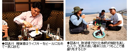 希釈式焼酎は、防波堤で釣りをしながら酒盛りをするような、カジュアルな酒との付き合い方をもたらしました(図表16)。一方で、深く酔うことも容認しています。節度を持って酒を楽しむという難題を、韓国もまたこれから模索していくのでしょう。