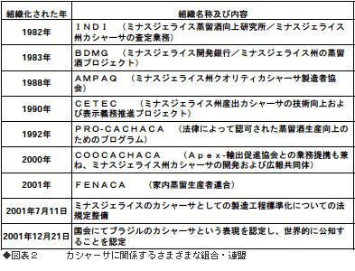 図表2に示したさまざまな組合や連盟は、蒸留所をまとめ、製品の成分分析の後、レジスター(登録)し、消費者へ提供する役目を負う。組合/連盟のシールがはられている製品は消費者が安心して飲めるカシャーサというわけだ。また、サトウキビの品種選抜、