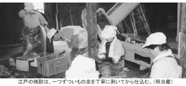 「江戸時代の造りでは、いもの皮を剥いて仕込んでいたという記録が残っています。あの頃は、想像するに、献上品や自家消費として造っていたので、美味しいものを造るのに手間暇を惜しまなかったのでしょう。自分で飲むものを造るとなると人間手間を惜しまないものです。