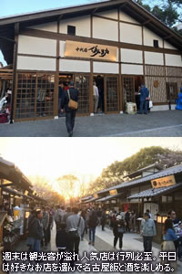 そのなかの一軒、「十代目儀助」は立ち飲みの酒場で、愛知県の清酒・梅酒・クラフトビールなどショットでリーズナブルに楽しめる。ショップも併設しているので、あれこれ試して気に入ったものを購入して帰ることもできるのはうれしい。週末は国内外からの観光客で混雑するので、ゆっくり飲み比べるなら比較的空いている平日がおすすめ。周りには桜の見どころが多く、これからの季節ぜひ出かけたいスポットだ。