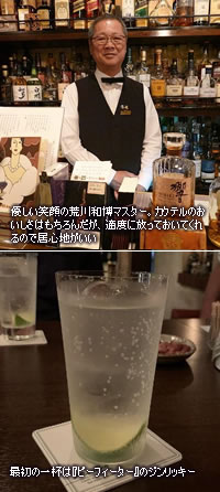 鹿児島でもスタートはいつものとおりジンリッキー。よく磨かれた薄いグラスのタンブラーの、底に沈んだライムの緑が爽やかさを引き立てます。キリッとした味わいをおいしくいただいて、二代目マスターの荒川さん
