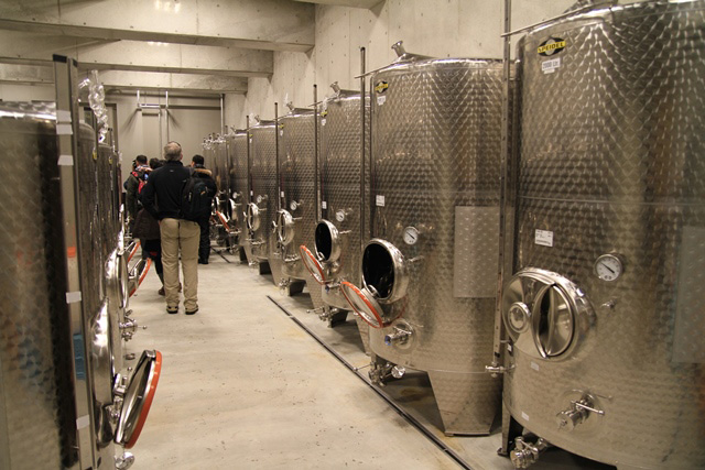 そして今回のツアーの目玉のひとつである仁木ヒルズヴィレッジです。余市の町を見下ろす高台にあり、六ヘクタールのブドウ畑を確保して、すでに農家から購入したブドウでワインをつくり始めています。来春には20室のホテルとレストランが開業予定で、日本初の本格的なリゾートワイナリーを目指しています。投資額はなんと10億円。今回、初めて特別に一般に公開され、醸造棟を見学しました。魅力がたくさんあるワイナリーですが、一番のすばらしさはなんと言っても眺望でしょう。余市・仁木を見おろす景色は春夏秋冬、朝昼晩、違う表情を見せてくれそうです。